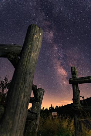 The Milky Way, arching above Carver's Gap and the Appalachian Trail, Roan Mountain.