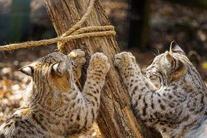 Carter & Cash using their climbing tower as a scratching post at the same time.