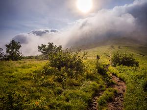 I had hiked through fog all morning and when I got to this spot the fog broke for about 10 minutes, reveling this, but then went back go thick fog (clouds) as they blew back over the balds.